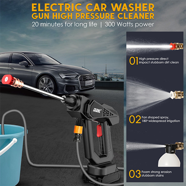 Revamp you cleaning regimen with this multi-purpose portable power cleaner. It integrates the function of sprayer and high-pressure cleaner, making cleaning a breeze. With an extra-long 8cm hose and three functions, say goodbye to dirty surfaces. The bucket adds to the convenience, making it perfect for all your cleaning needs.